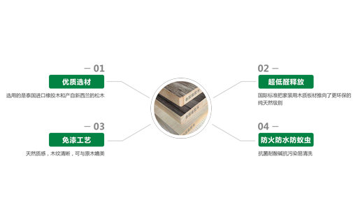 如果兒童房、別墅大宅、總統套房對板材有更高要求,我公司生產的愛鴿牌實木硅晶板將是您的優選。其基材選用的是泰國進口橡膠木和產自新西蘭的松木,再把硅晶材料、進口高壓木紋紙熔化在橡膠木、松木表面,從而把家裝用木質板材推向了更環保的天然級別。讓裝好的新家芳香四溢,邁進家門,好像進入了森林一樣的感覺。